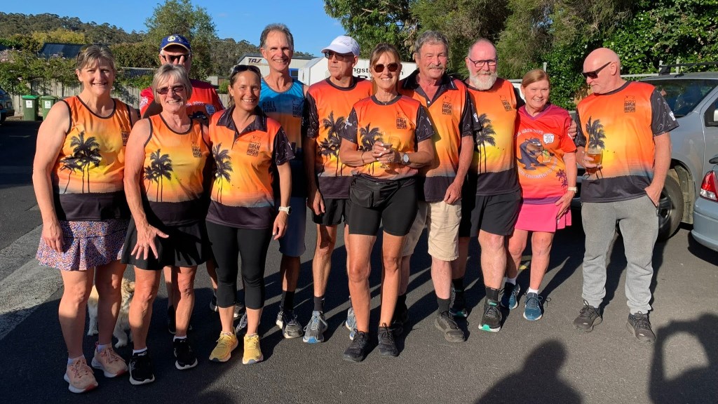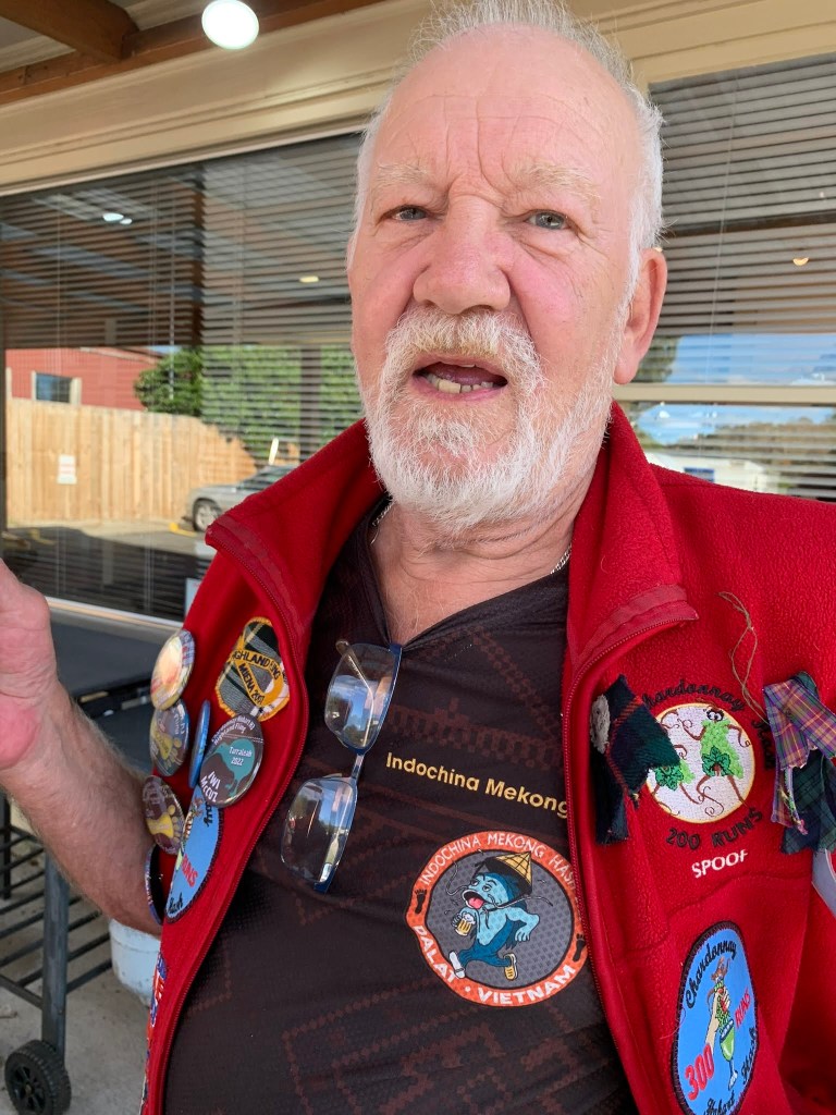 As Ted and I were heading over the bridge on the way to Hash, it was a pleasant surprise to see no white caps, and the river picture-perfect calm. With a balmy 27 degrees forecast and no wind, what more could you ask for on a hash night? As Ted and I rolled into the RSL carpark we were greeted by the most hated man in Hash, In The Raw and his innocent nephew, Jaffa, enjoying a cold bevvy. Ted and I were happy to disrupt their bonding time and join them in partaking in a cold beer. Snacky and Dyke were next to roll up. Snacky is taking his Hash Cash duties very seriously and proceeded to set his square thingy only to be told that Maxi was inside with his already set up. The latter joined us outside and proceeded to collect the $$$. Herr Flick arrived looking like the mafia king in his dark glasses after having cataract surgery on his left eye.