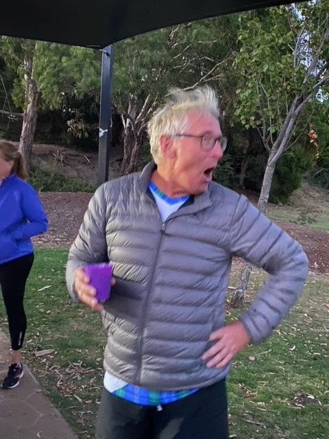 We followed the Rosny Esplanade round to the absent GM, Softy’s, house where Billie thought we were on the runners’ trail and wanted to head back to the footpath towards the Rosny sh!t works. I had to re-educated her… Our walkers trail then did a loop down Ninda St and back up Nimala St. Dyke and Jaffa insisted we jog a bit to be out of sight of the rear end walkers to make sure they did not short cut!