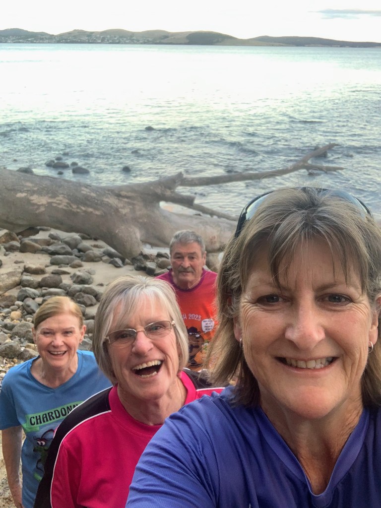 I had no high expectations of the run as seriously it was fairly predictable considering Taroona is like an isthmus, one side a big river and the other a big mountain. He’s tossed the coin – heads right, tails left. Obviously today he couldn’t decide so runners went right along the river and walkers went left, not before creating much intrigue from the kiddies at the skate park.
