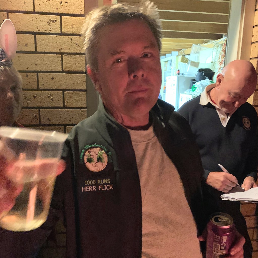 - Herr Flick, for not doing the run at all! Swanned off to the Polish Club for a beer on the pretense of organizing his upcumming trail. Got back in time for more beer at the p!ss stop.