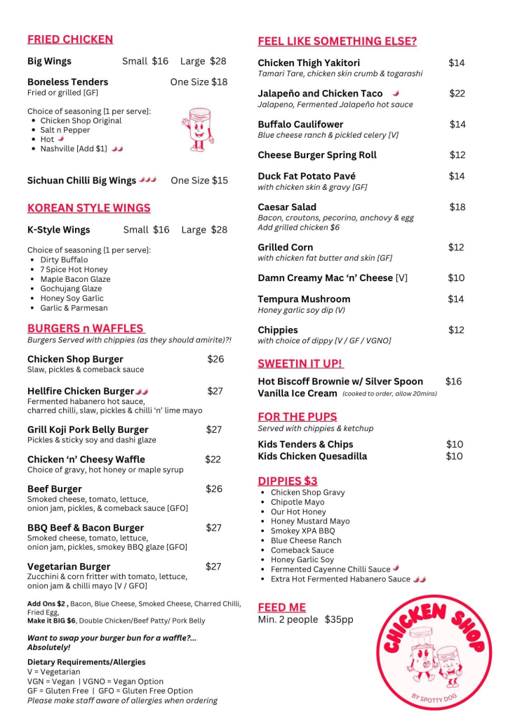$5 run fee – buy your own food and drinks at the venue. (See menu below)