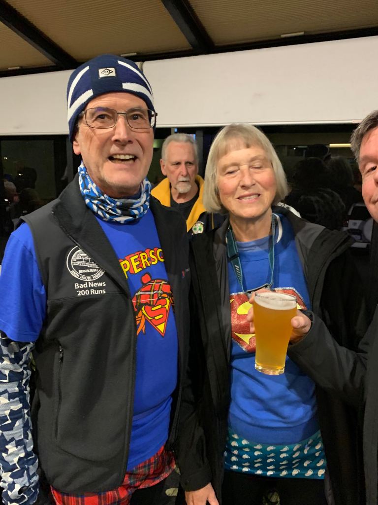 Jack Sh!t obviously had advance information that we would be running mostly through Warrane – let’s just say he dressed appropriately to fit in. Prickit added a flashing red light to her running attire to confuse the locals into thinking she was a fast moving bike or scooter. Deception through dress was the order of the evening with Bad News and Can’t Stop donning Superman/Superscot outfits to pretend that they could make a quick aerial exit from any potential trouble. Others like Herr Flick missed the brief on suburb-appropriate attire completely and were forced to walk as fast as their legs would carry them until they reached the safety of the p!ss stop. A further notable feature of the run was plenty of shiggy – something not normally seen on a CH3 run.