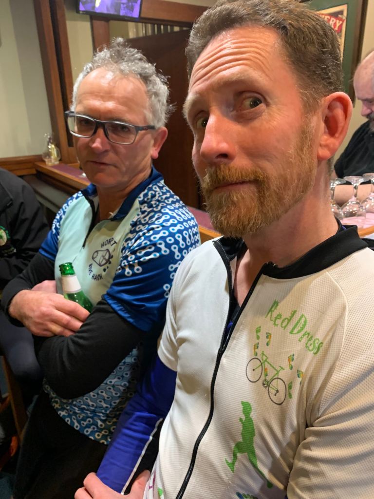 Unfortunately, there had been a tactical error by some of the other sprinters to team up and form an echelon to split from the main peloton sprinters to support the white jersey team leader Hooray. This proved to be a disastrous manoeuvre which eventually led to Wee Bev, Soft Cock and Snack Bar needing to take a nature break and losing trail and missing the cut off time for the remaining piss stops.