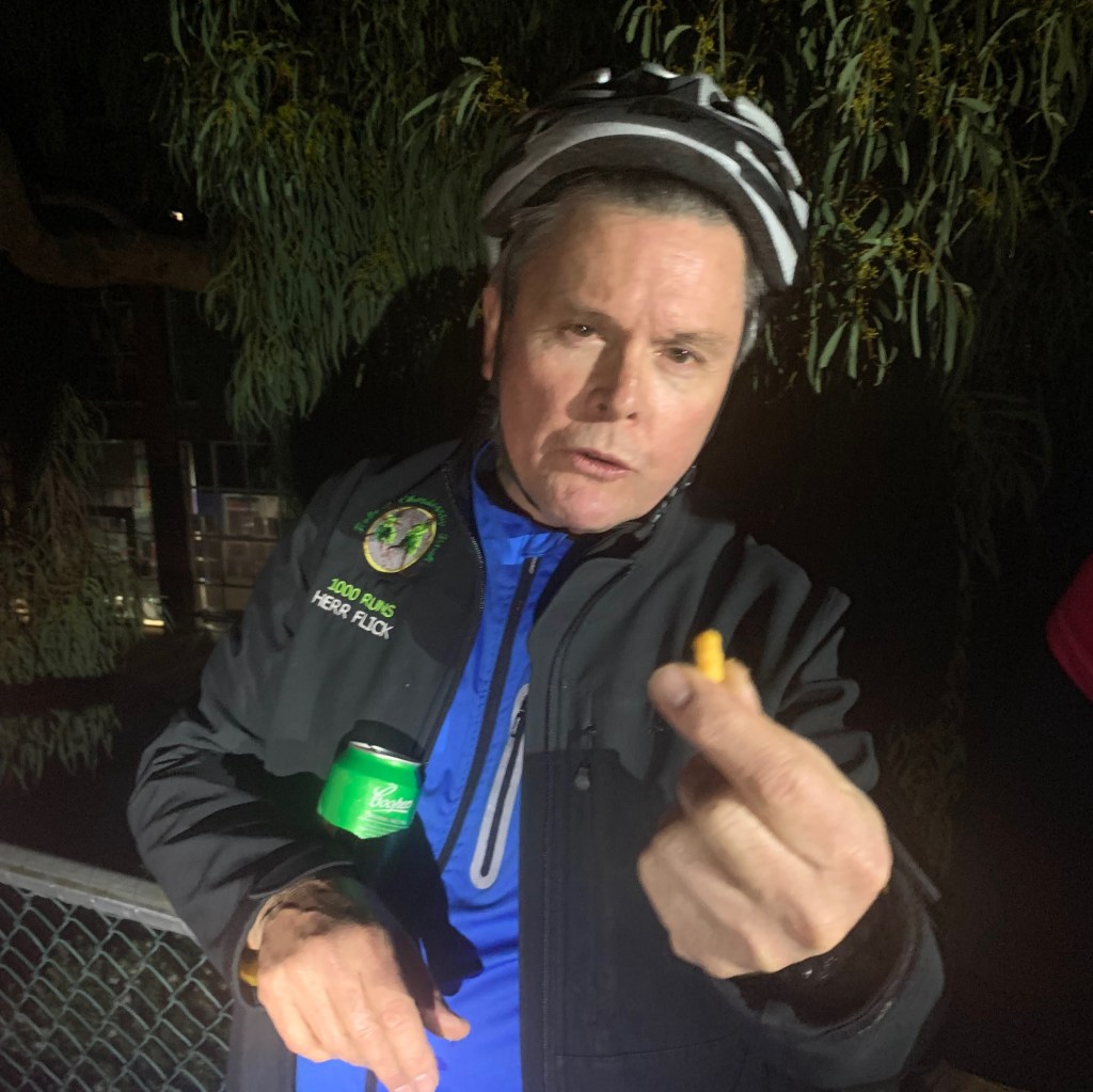 - Herr Flick. Now retired and a member of the midweek aged bike hash. After a disastrous wardrobe failure on his first outing he has now got himself a pair of pants with a nappy insert.. but doesn’t know where to put his pee wee.