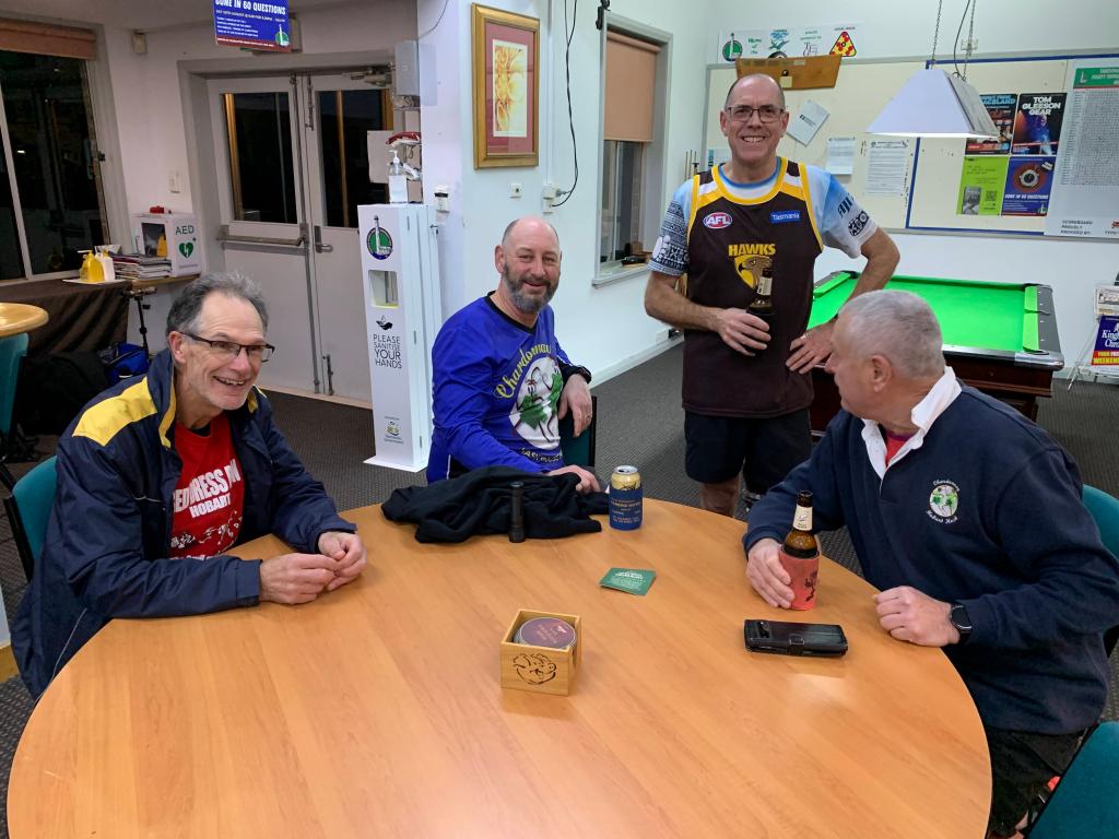 Back at the bowls club whilst we eagerly awaited their meals, ITR was showing off his broken finger when Dyke decided to see how sore it was by squeezing it. Yep, it was sore. I thought ITR was going to cry. Grizzly sat with the look of shock on his face as he chuckled quietly to himself.