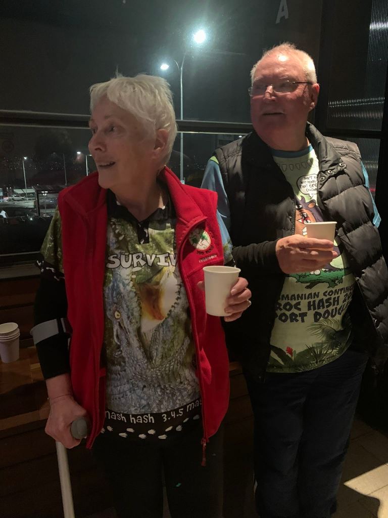 Now that was interesting, wasn’t it. Now let’s get to the run. Virgin Chardonnay run-setter Fringe Benefits was assisted by TopDek . The run started along the Howrah bike path and was looking like it was going to be a bit uninteresting, but once we started to climb up the hills it got a bit more interesting, with a few twists and turns. Only four runners completed the runners trail: Maximus, Poley, Hooray and Prickit. It seems not all the walkers did all the walkers’ trail with a few opting for the easy option to hash back along the main road. Back at the venue a variety of meals were served. The Lip session followed, moving outside to the veranda. The Lips did well under the circumstances.