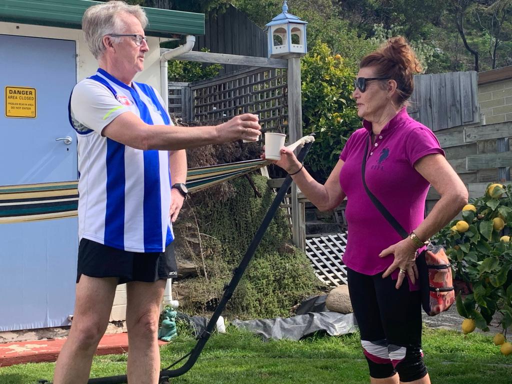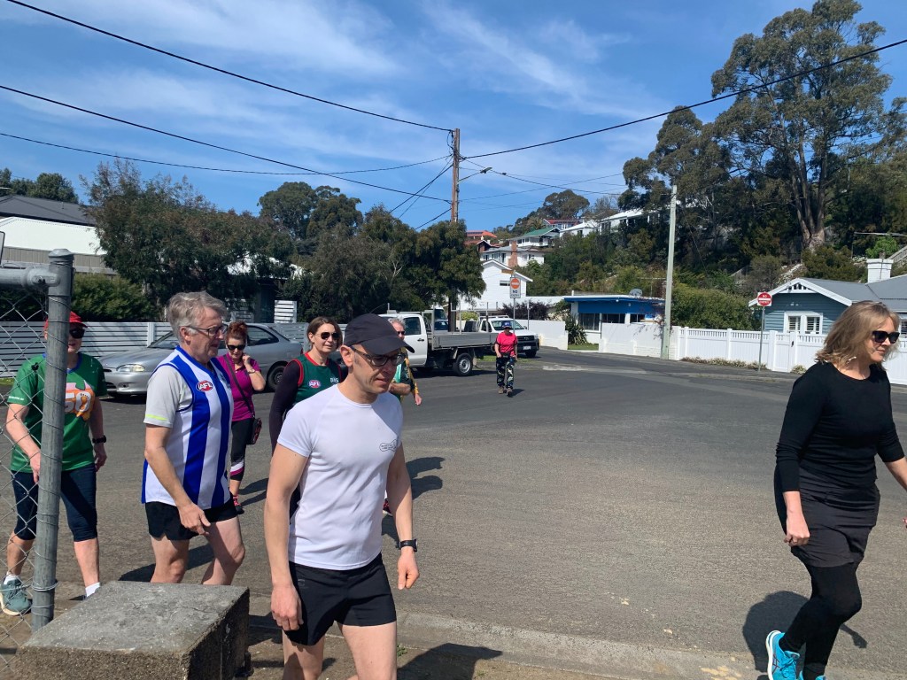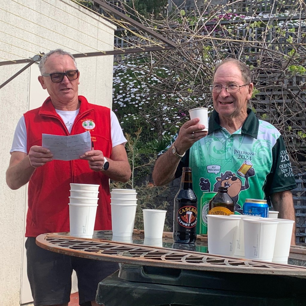 A small but quality crowd gathered for Grand Final Hash with Hares Jack Sh*t and Red Dress informing the gathering that the run/walk was one of Kingston’s less hilly routes. In fairness, there was only one hill; it’s just that the one hill went from 10m above sea level to around 130m in the space of a kilometre. Luckily, the vista was so good that it provided the odd Hasher with the motivation to stop and appreciate the panorama en route.