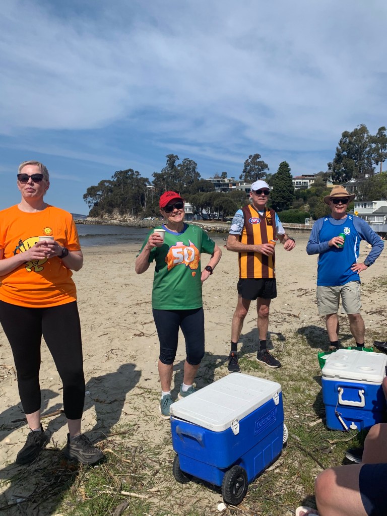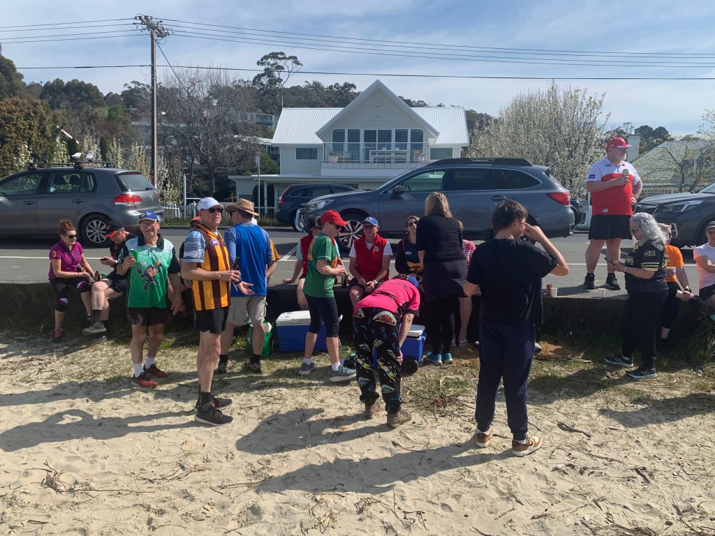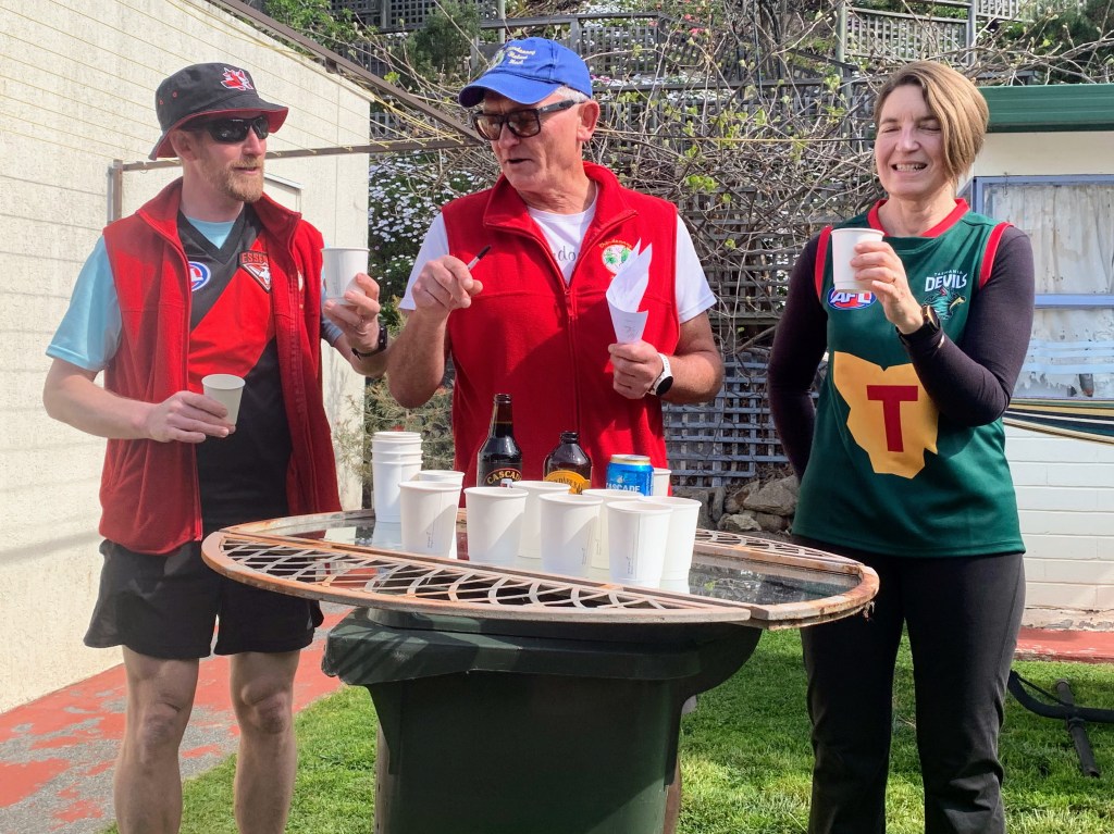 Back at the on on, a lively lip session ensued, but I have absolutely no idea what happened as the indulgence in the Hash Hops on Kingston Beach temporarily wiped my memory. The usual shenanigans occurred with Griz taking on the role of BBQ King, while a number of Hashers attempted to get onto the hammock built for people of at least 6’3” tall. Maximus clearly went to the New Zealand School of Hammocking, thinking that sitting on the edge of a hammock when someone was halfway on would have no impact on the laws of physics. Luckily at that point the main event started so the serious AFL supporters went to camp around the TV to watch the good old Roy Boys flog the South Melbourne Swans.