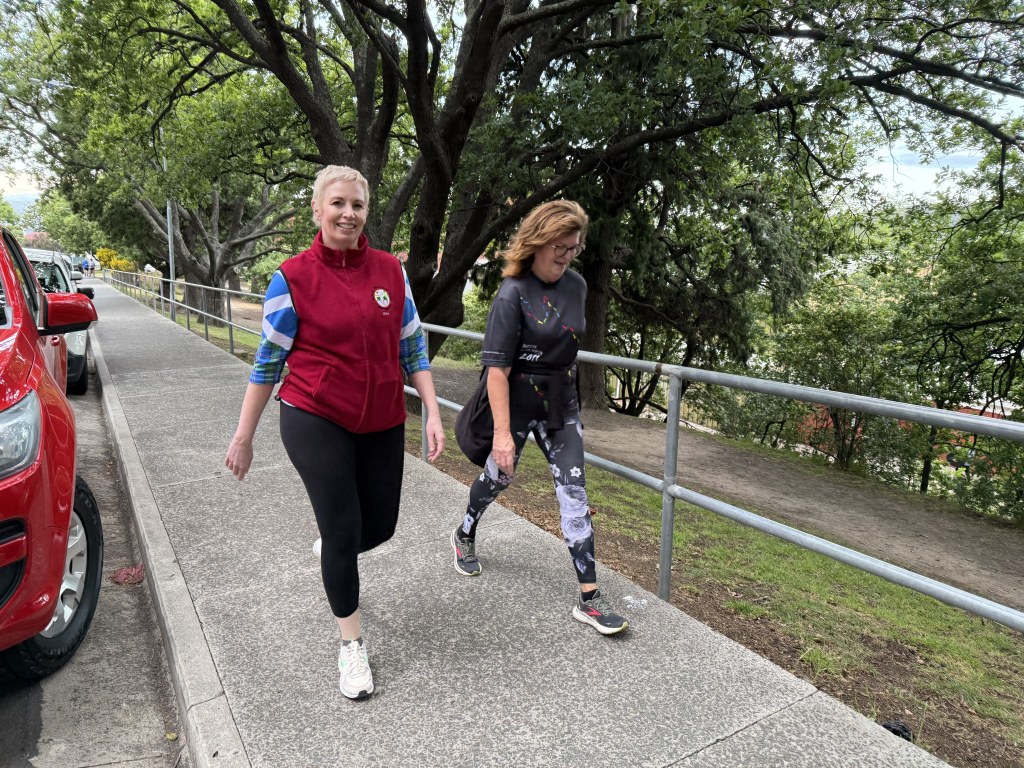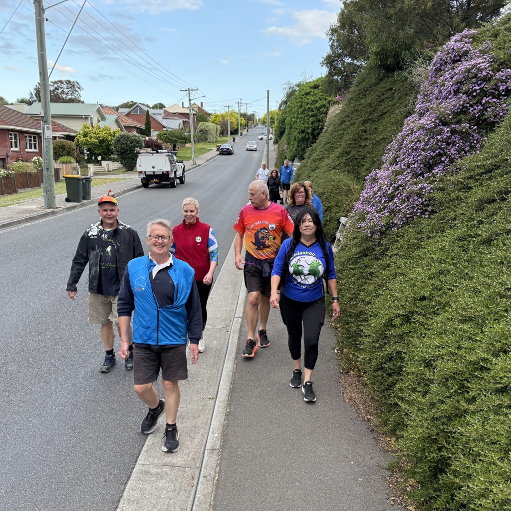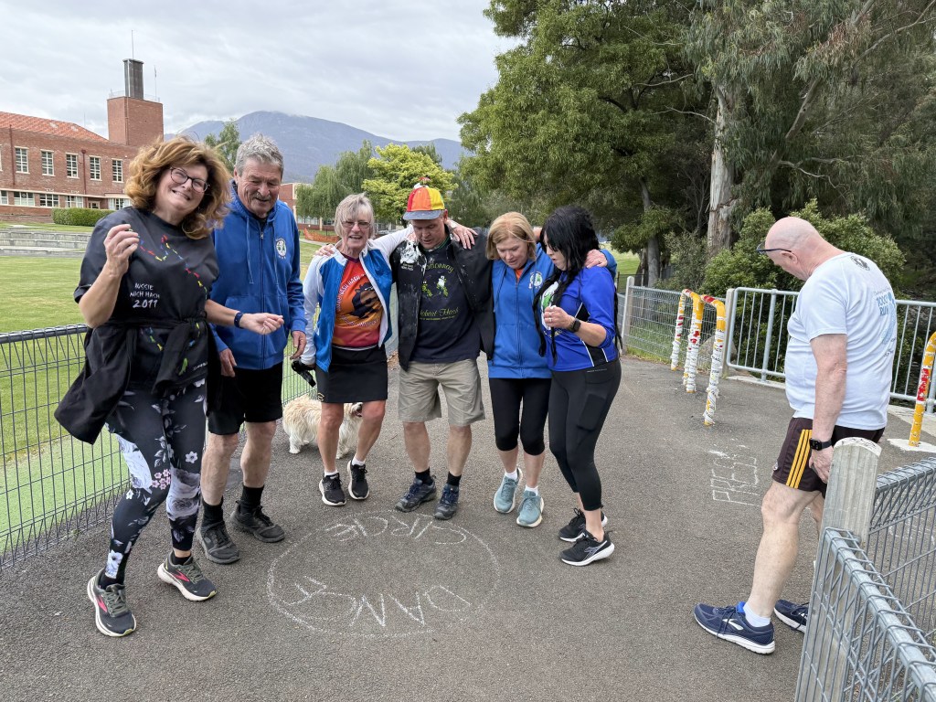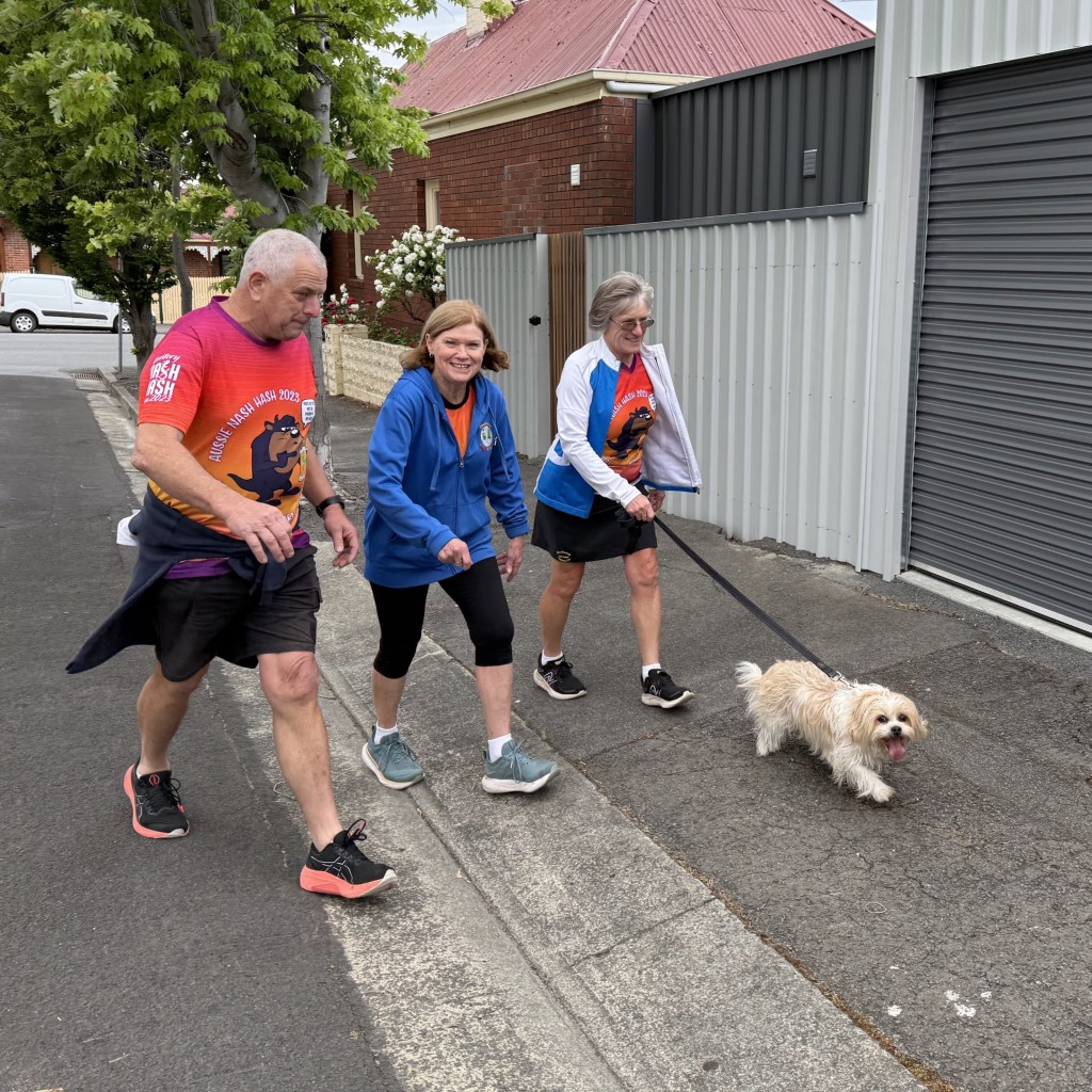 The thrilling adventure began as they galloped down St Johns Avenue, casually waving goodbye to the NRE Newtown Research Laboratories—because who doesn’t love a little science on their run? A swift right turn at Middle Road led them behind Hobart City High School, navigating a dirt path that could easily moonlight as an obstacle course for ninja warriors. Speaking of obstacles, the end of the trail was reached somewhere near New Town Primary School, where a traffic-free Foster Street became their racetrack. Maximus, leading the charge, dashed across like an Olympic sprinter, while the walkers tried to keep up, spurred on by Grizzly’s enthusiastic “On On!”
