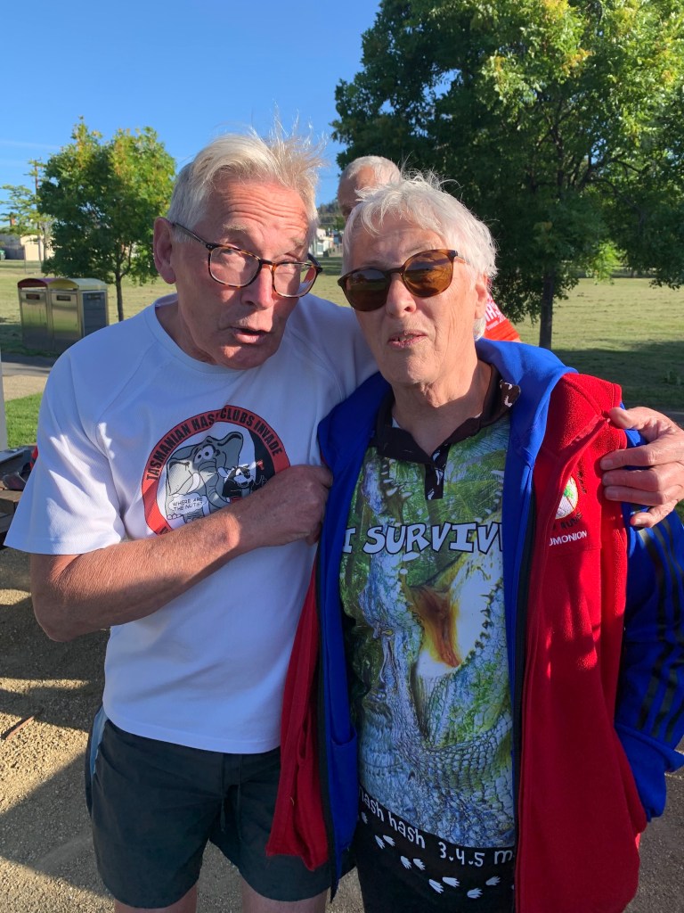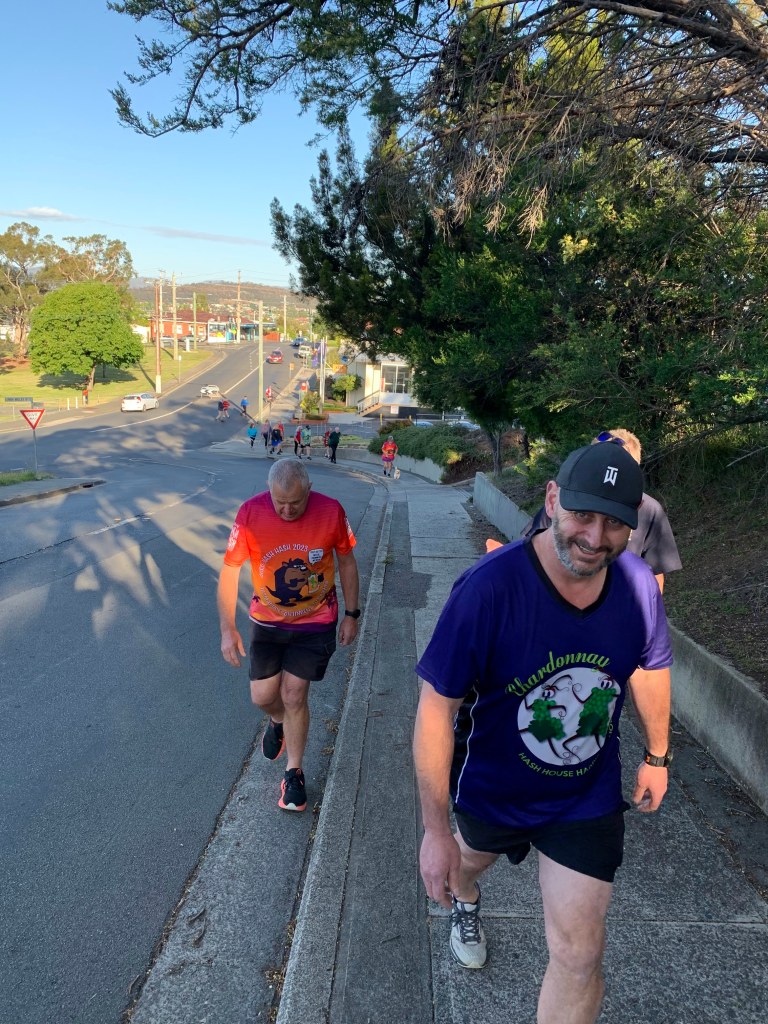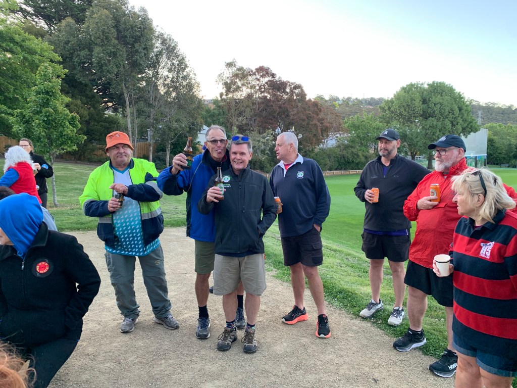 It was quite a pleasant Run through the bush looking at the stars and the moon. I saw a shooting star, but no one believe me perhaps it’s an omen for something. Of course, what goes up must come down and down we went. And down and down and down through the suburbs of Lanah Valley until we got to the park. Where Uber and Cumunion who stayed on the northern side of the park drinking. A bit of local knowledge in the streets of, Lenah Valley by to the aforesaid drink stop.