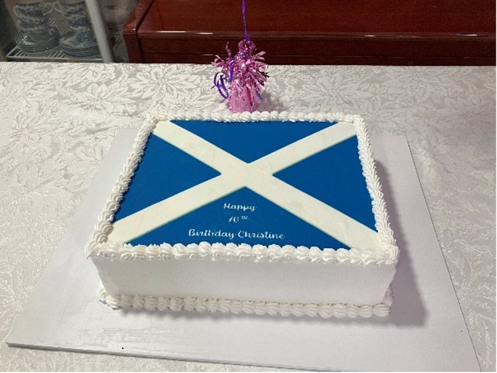 The St Andrew’s Cross also featured on Mistress’ 70th birthday cake. The last birthday we helped her celebrate before she ascended to Cloud 9 Hash.