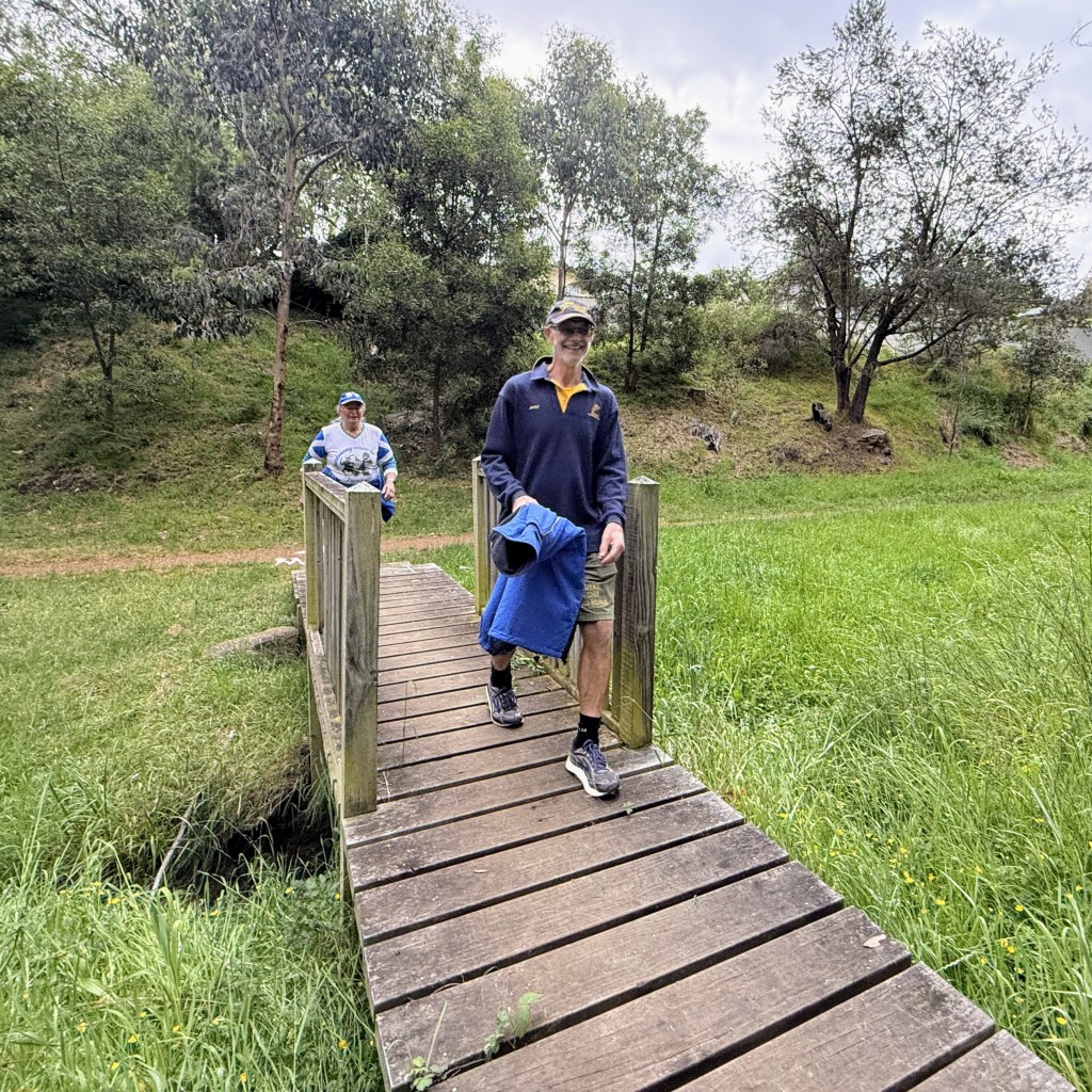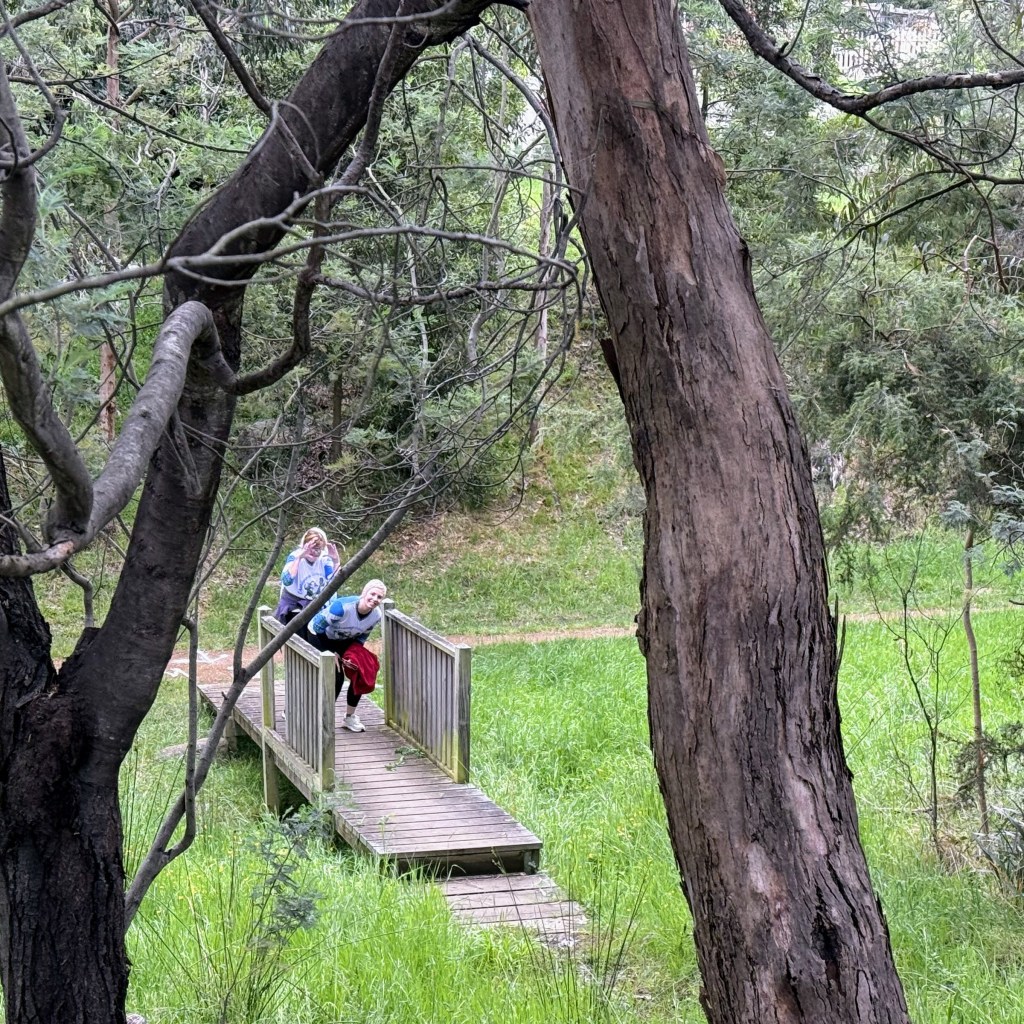 Once we returned after doing the loop, trail headed along a creek path before crossing the creek and heading up to the Clarence Campus of TAFE. This was new territory to most, never having gotten past sixth grade.