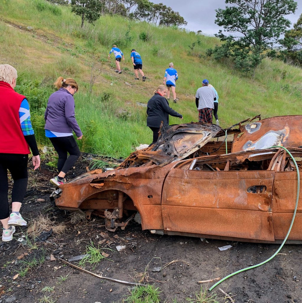 After a tour of the TAFE mulch farm, we popped out through a hole in the fence to a Hare and the p!ss stop. There was Atholl brose (aka porridge), Irn Bru, shortbread and bubbles (because not even Wee Bev is prepared to take on the bubbles mafia).