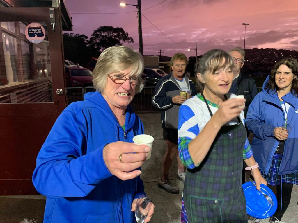 Why the prevarication I hear you ask. Well I didn’t attend the run and while Maxi was kind enough to send me his run details on Strava, I don’t have Strava so was unable to open his missive. Similarly Wee Bev gave me some lovely maps but the detail is so minute and fuzzy on my phone screen I’m guessing the walkers circumnavigated North Warrane Oval using Bounty Street, Bligh St and Flagstaff Gully Road. I’m also guessing the runners did something similar but on a grander scale. Not long after I arrived at Wee Bev’s p!ss stop everyone was present and accounted for. Apart from the usual beer and wine there were some Scottish beverages that evoked various responses. I personally, enjoyed the Scottish brew that I heard someone allude to as ‘porridge’. Harsh.