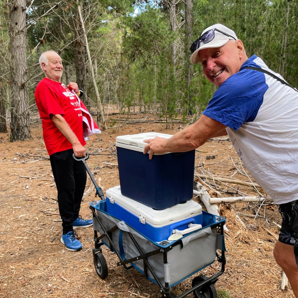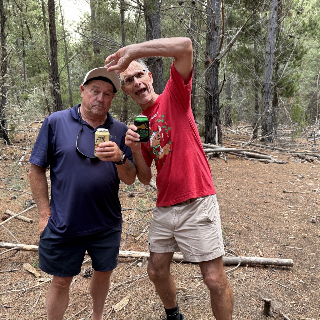 The run was around 7km which had the runners come in first. The walk was around 5km. [Even though the walkers’ Strava records averaged out at around 6.8km? Ed.] It was a predictable trail through the golf course out on the horsey trail, through where the new cricket high performance centre will go and then into the dirty old pine forest. What no beach on a beautiful evening? Oh well probably safe seeing as no one knew if the afternoon effluent catastrophe would reach that far! There were the usual short cutting bastards. Allegedly if you cut a hole in the golf course fence you cut off at least 3km. Isn’t that correct; Spoof, Crusha and Uber?