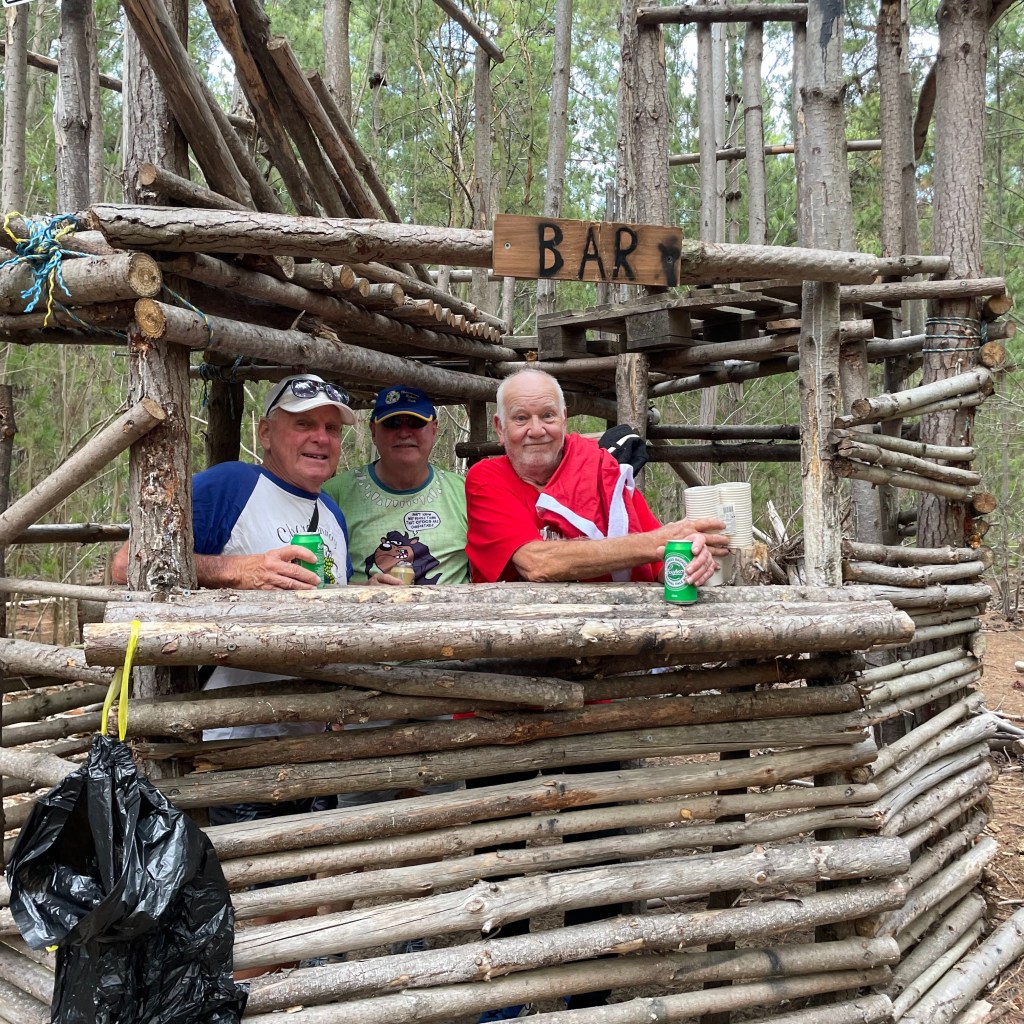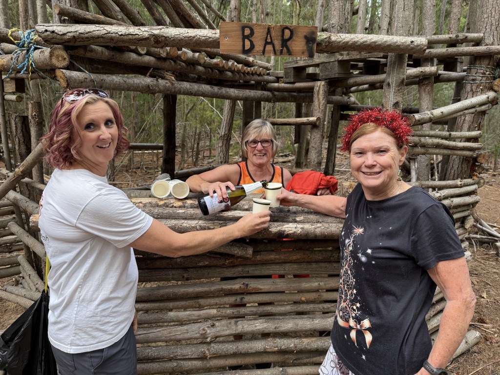 Hands On hosted the p!ss stop in the dirty old pine forest and had to haul her sand buggy with the eskies at least 1km to the fort. Sadly, the Christmas miracle of disc golf was some distance away. Oh well maybe next time we can encourage Hashers to BYO frisbee, plastic plate or any other plastic flying vessel and try out the disc golf course. I’m sure the JM’s were relieved as they were assured that this run, with the Christmas miracle, would not outdo their previous weeks efforts.