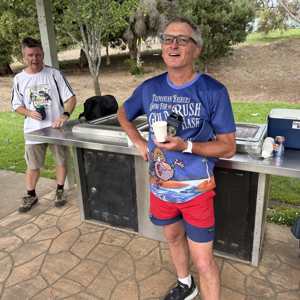We wound our way through the streets of Montagu Bay, where every second house seemed to have a deflated Santa and odd assortments of misplaced Christmas decorations. Onwards we Hashed over hills and golf courses, swearing intermittently at Jack Shit for marking out such a steep run so soon after Christmas! We even ended up in the back streets of Warrane, where luckily even the drug sellers were frightened off by our cries of ‘on on’ and ‘false trail.’
