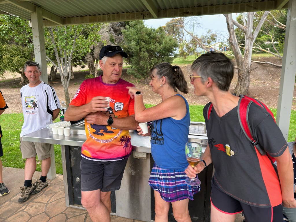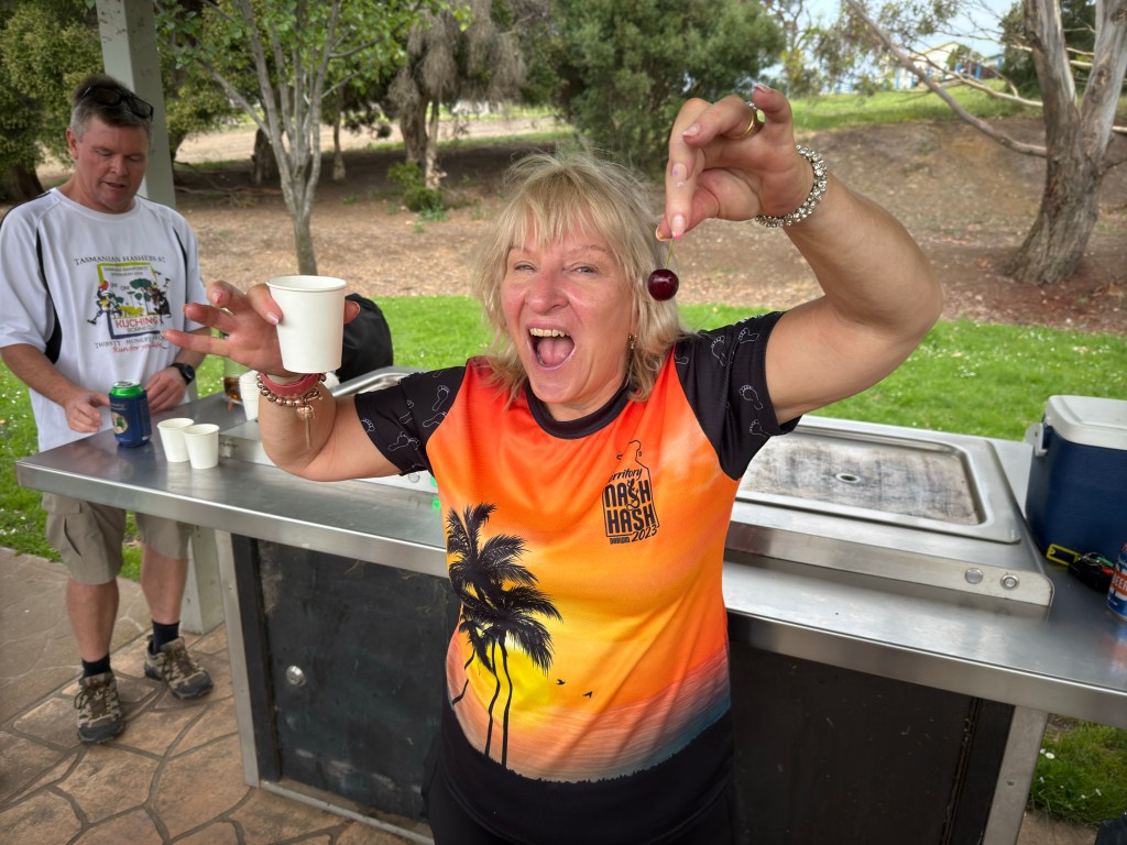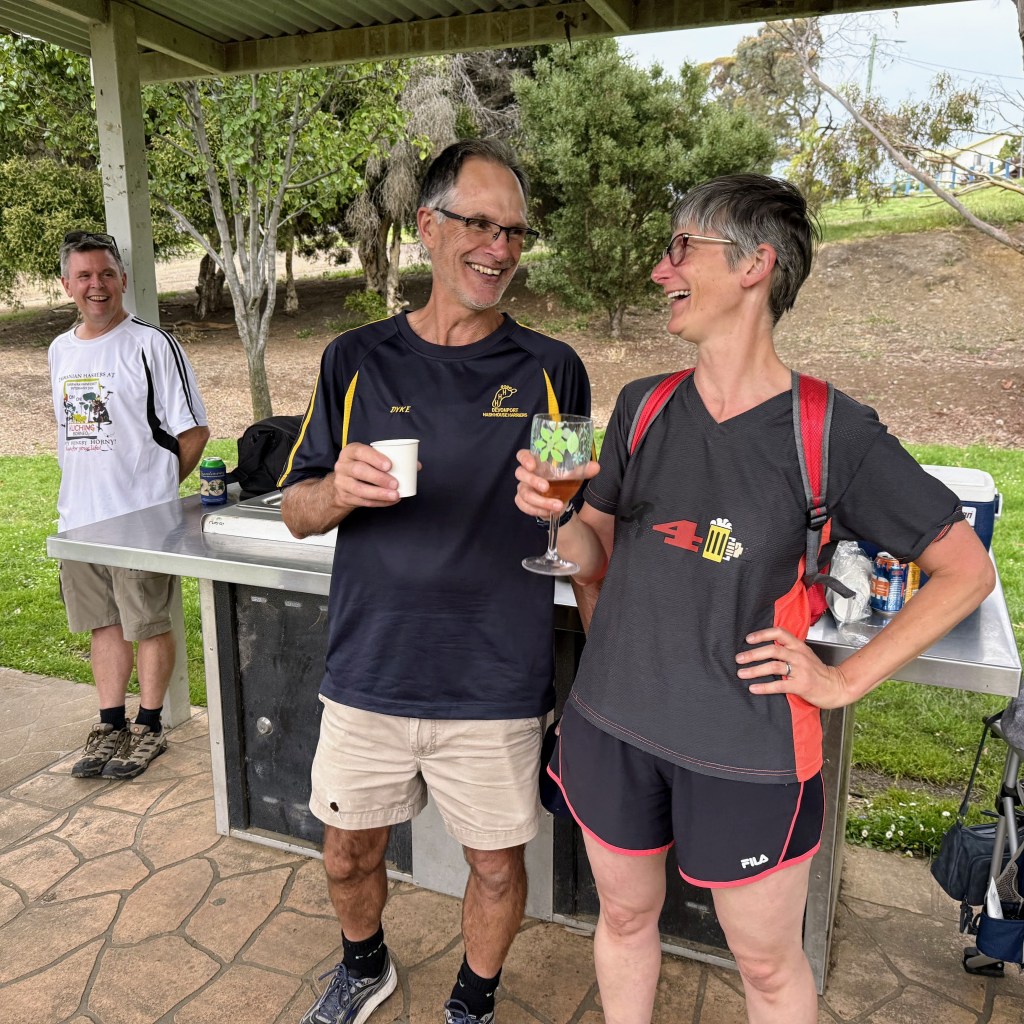 It was a smaller than usual pack in attendance on Chardonnay ‘s Boxing Day run, but we did have two Chardonnay virgins in attendance – Victoria from Denmark and French Tickler. We also had No Balls from South Oz come along as a visitor, as well as Lone Arranger’s sister Carol (aka Fruitcake).