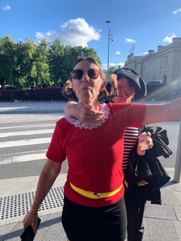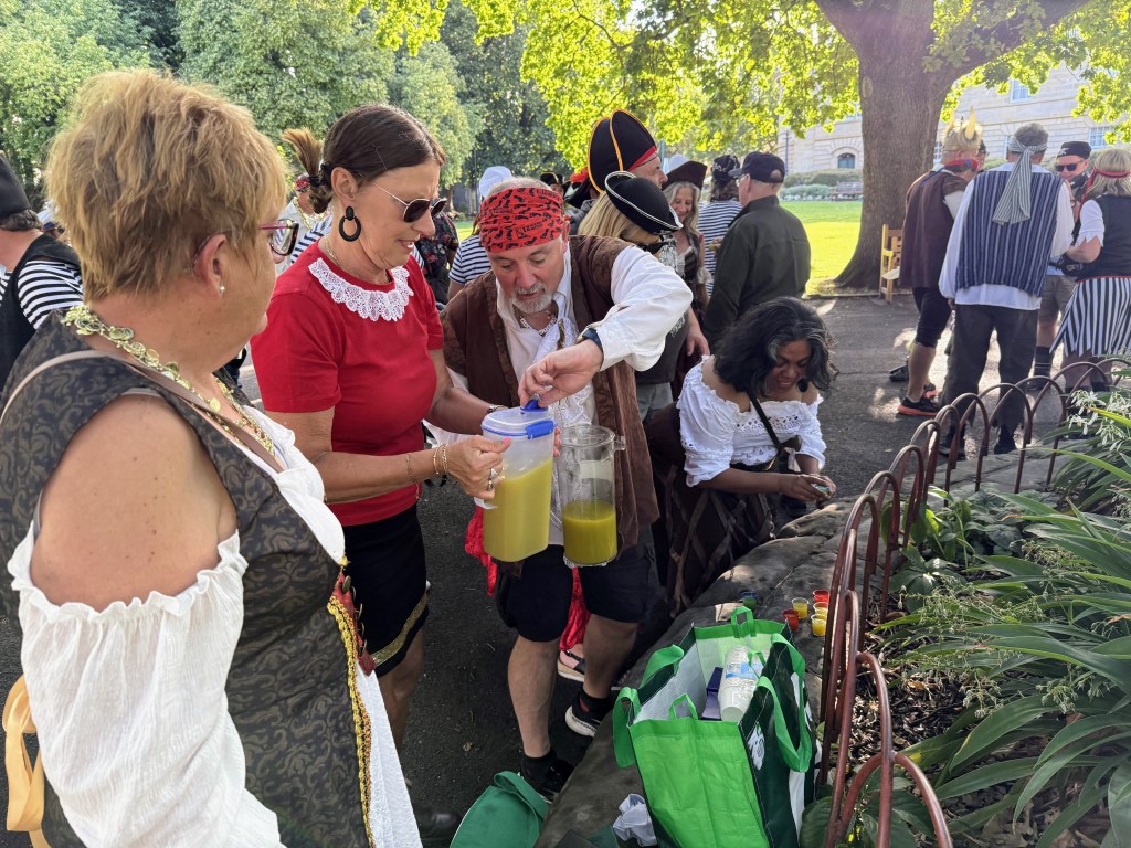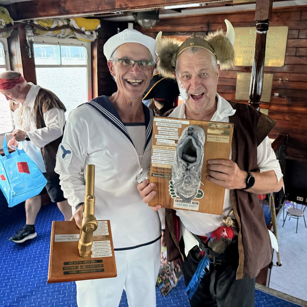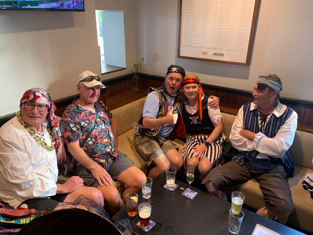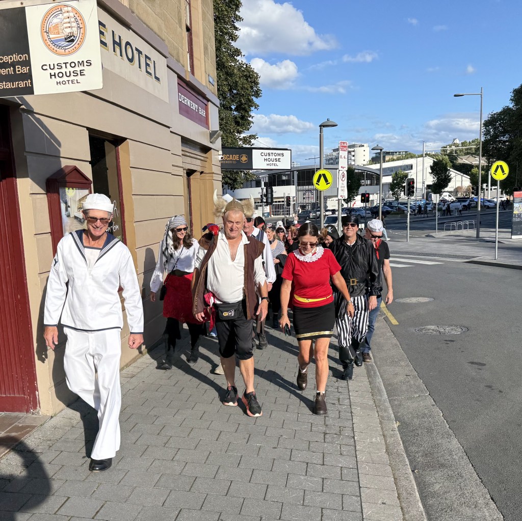 We all gathered at Customs House dressed nautically themed for wee drinks before a short stroll around Parliament Gardens, where we were given our run rations. Clearfell dropped his cup, but wasn’t keen to pick it up because sailor boy Dyke was right behind.