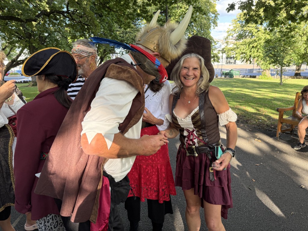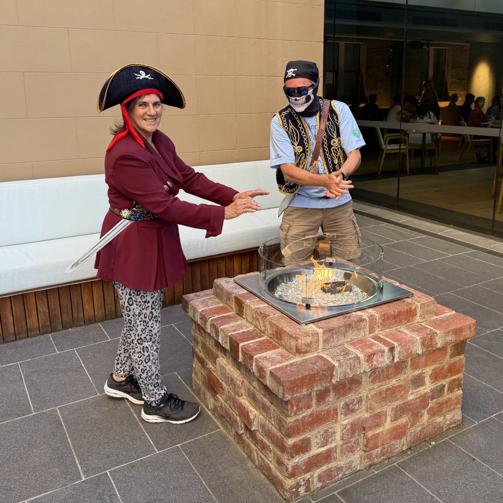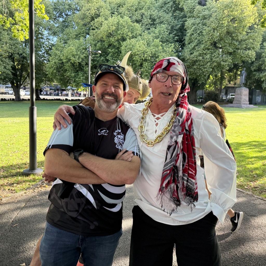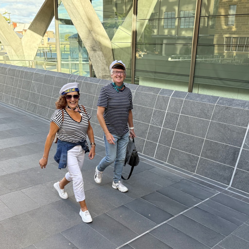 We all gathered at Customs House dressed nautically themed for wee drinks before a short stroll around Parliament Gardens, where we were given our run rations. Clearfell dropped his cup, but wasn’t keen to pick it up because sailor boy Dyke was right behind.