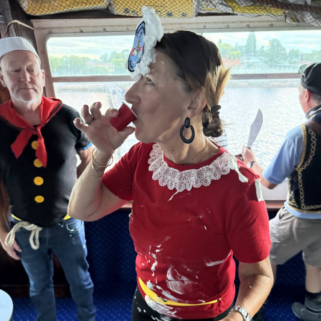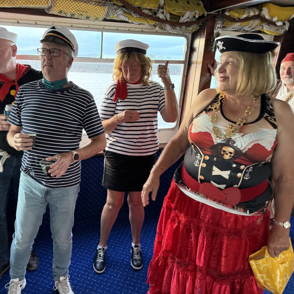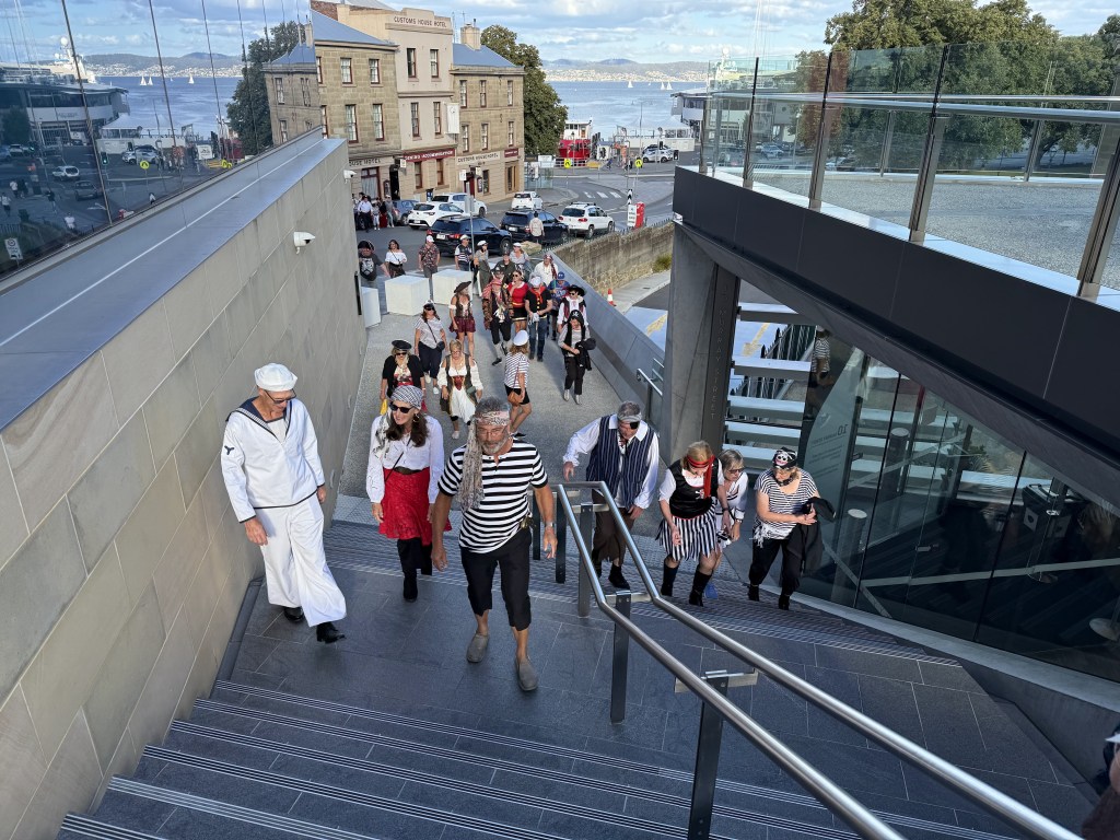 Everyone managed to walk the plank without falling in and we set sail upon the mighty Derwent for a lap around the harbour. First port of call for most seemed to be the ‘poop deck’, offloading the two-for-one happy hour drinks at the Customs.