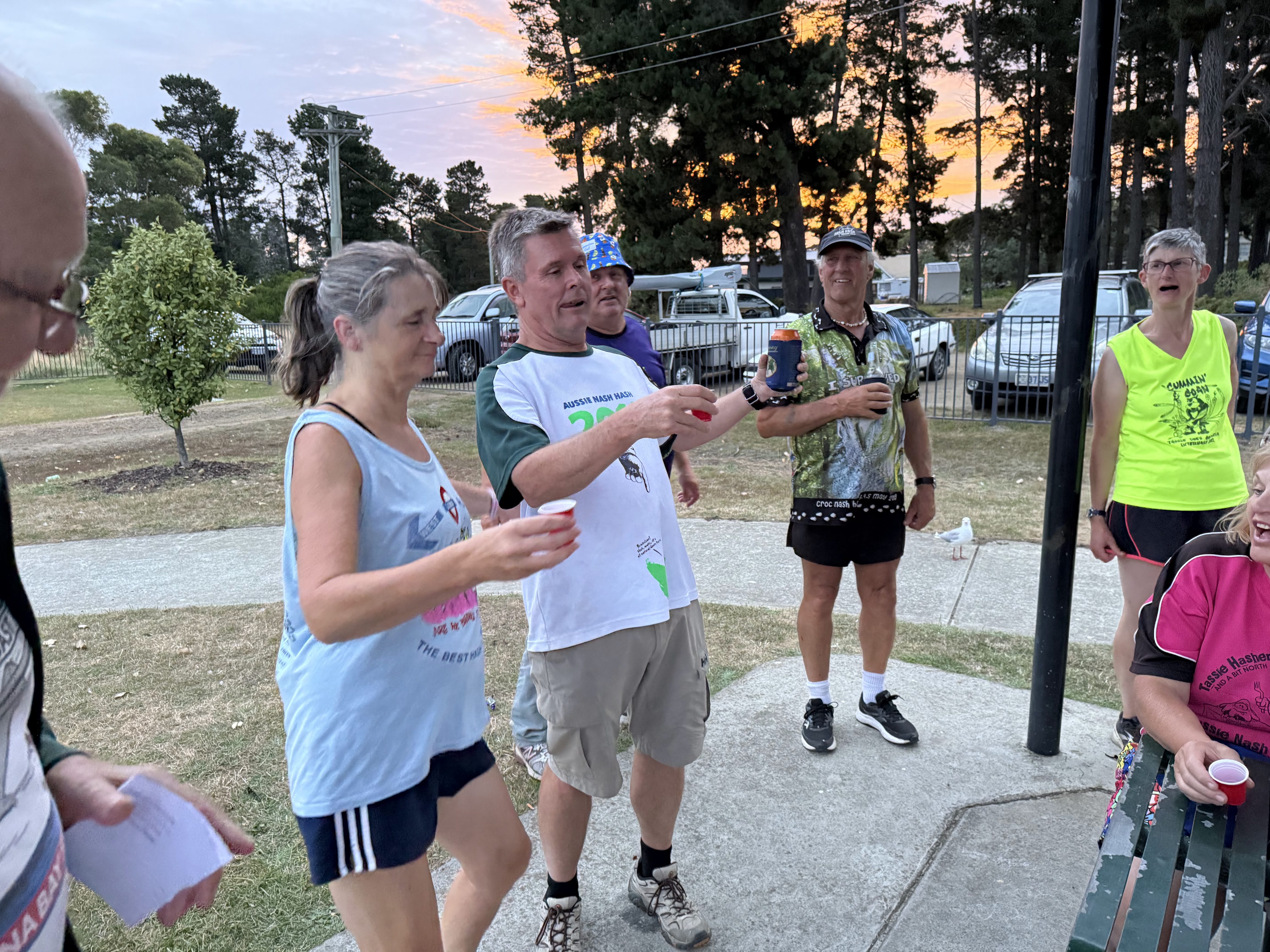 As the pack trickled back, pizzas magically appeared from the depths of Crusha’s ute, much to everyone’s delight. All in all, it was a fantastic evening and an absolute credit to the hares’ meticulous planning.