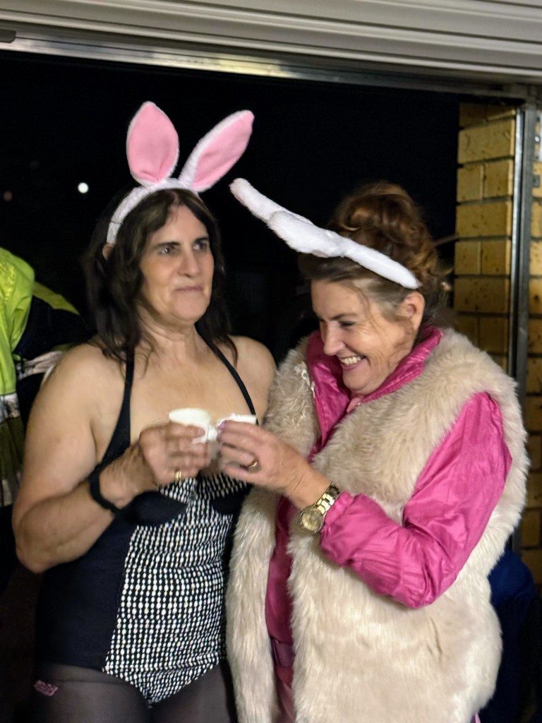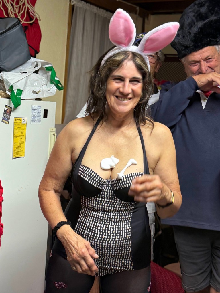 The throng gathered for the eloquent and loquacious lip session delivered with aplomb by the handsome Nancy Boy and even handsomer Spoof who should have won the best costume dressed as a bar of chocolate. However this award was shared by Fringe Benefits who looked and acted like a furry rabbit and Morticia who looked and acted like a proper live Bunny.