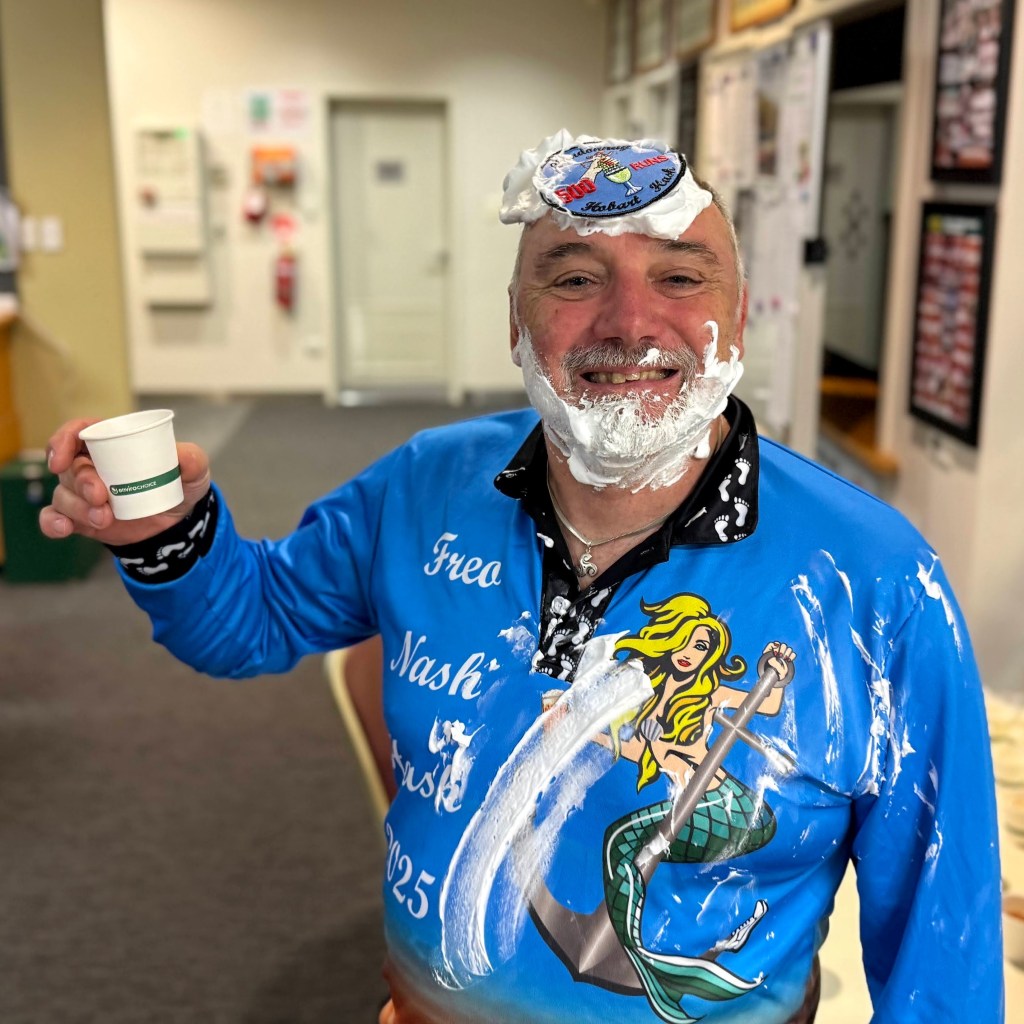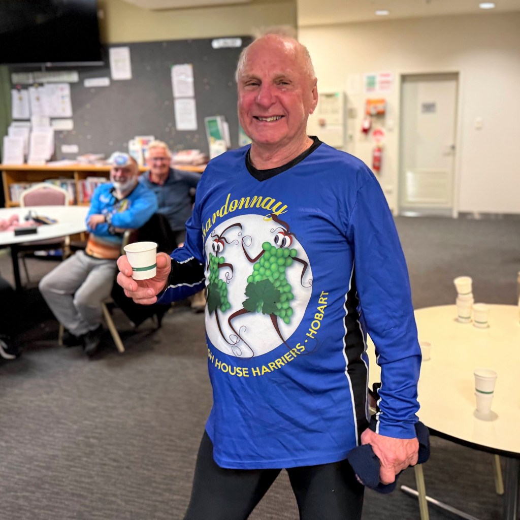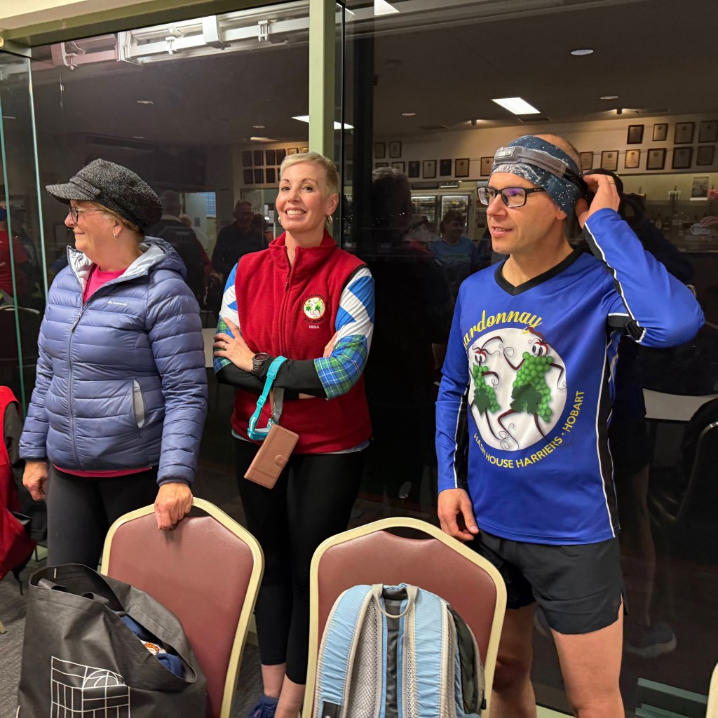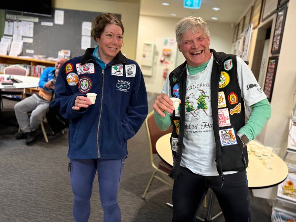 There were quite a few of us attending Chardonnay last Thursday evening at the Buckingham bowls club, to celebrate Cumonion’s 21st (a few times over!) birthday. Arsecutter copped a spray of Can’t Stop’s foam to commemorate his 500th run. As per usual, Can’t Stop had the foam everywhere, including poor Arsecutter’s crack! Down the Main Rd we set off winding our way through the back streets of New Town and Moonah. There was a bit of roadwork about so a few of the Harriettes stopped to see if there were any talented tradesmen about but alas nothing but Hooray and Maximus running on in the distance.