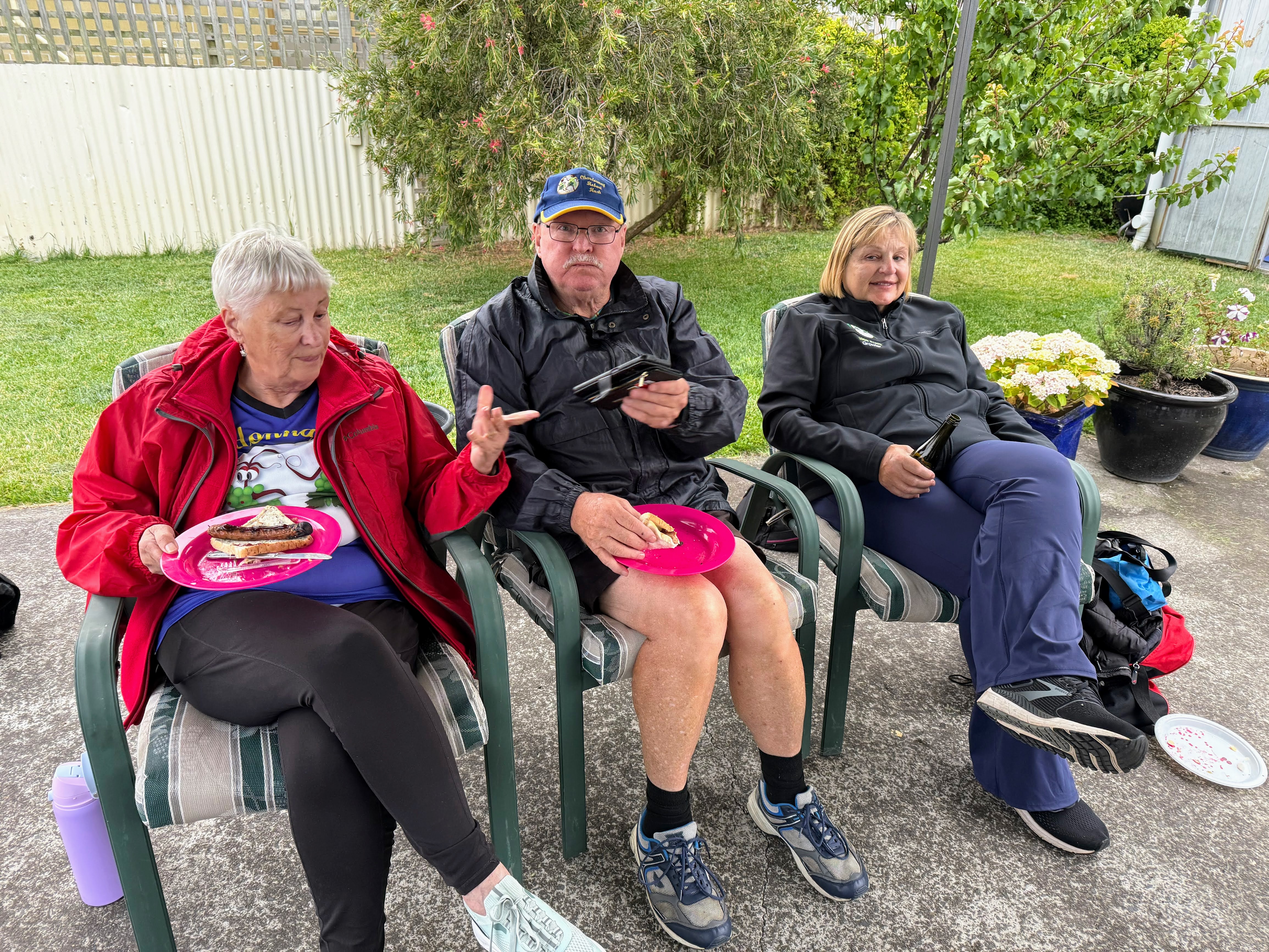 Ultimately, the fast-mincing walkers came in having covered over six kilometres, to find the other packs already back and had first and second dibs of the barbecued meat and salads. (The salads weren’t barbecued.)