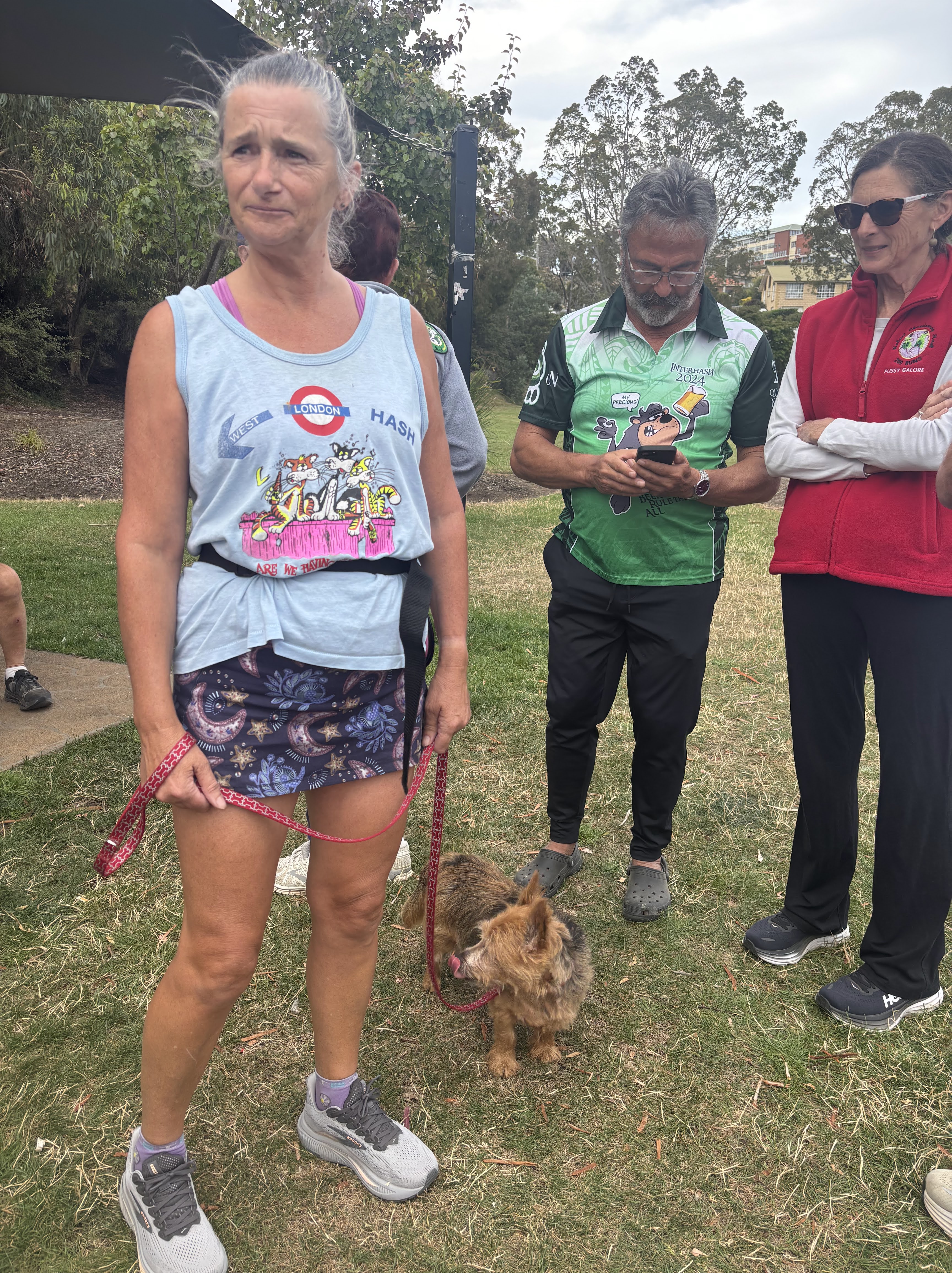 Several Hashers lost trail and returned to the barbecue area, however a phone call to locate the PS saw Morticia, Spoof and Ninja Nuisance hitch a ride with Lone Arranger to not miss out on some bubbly, cider, beer and nibbles.