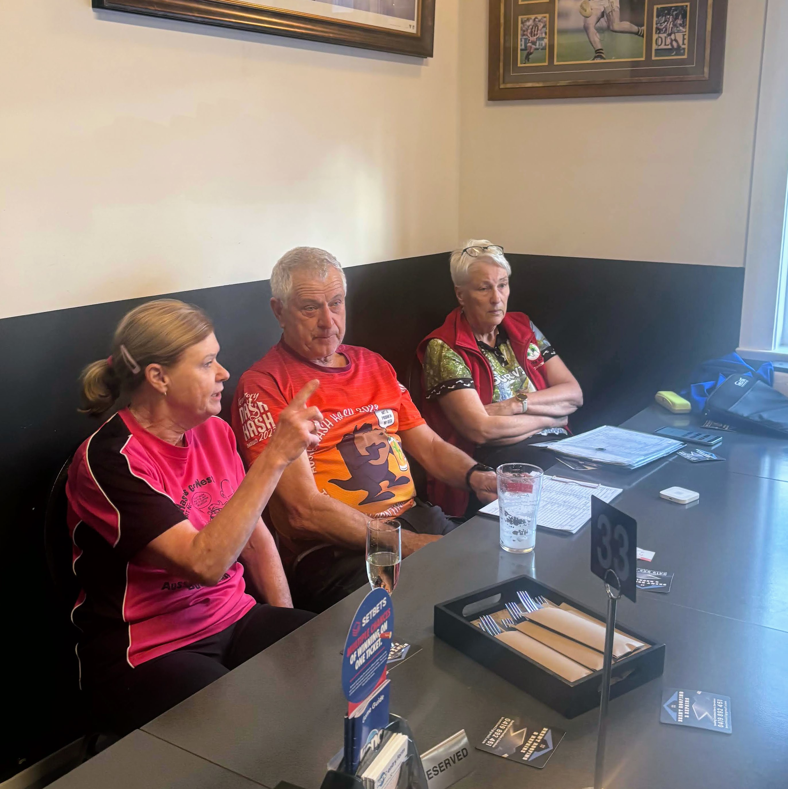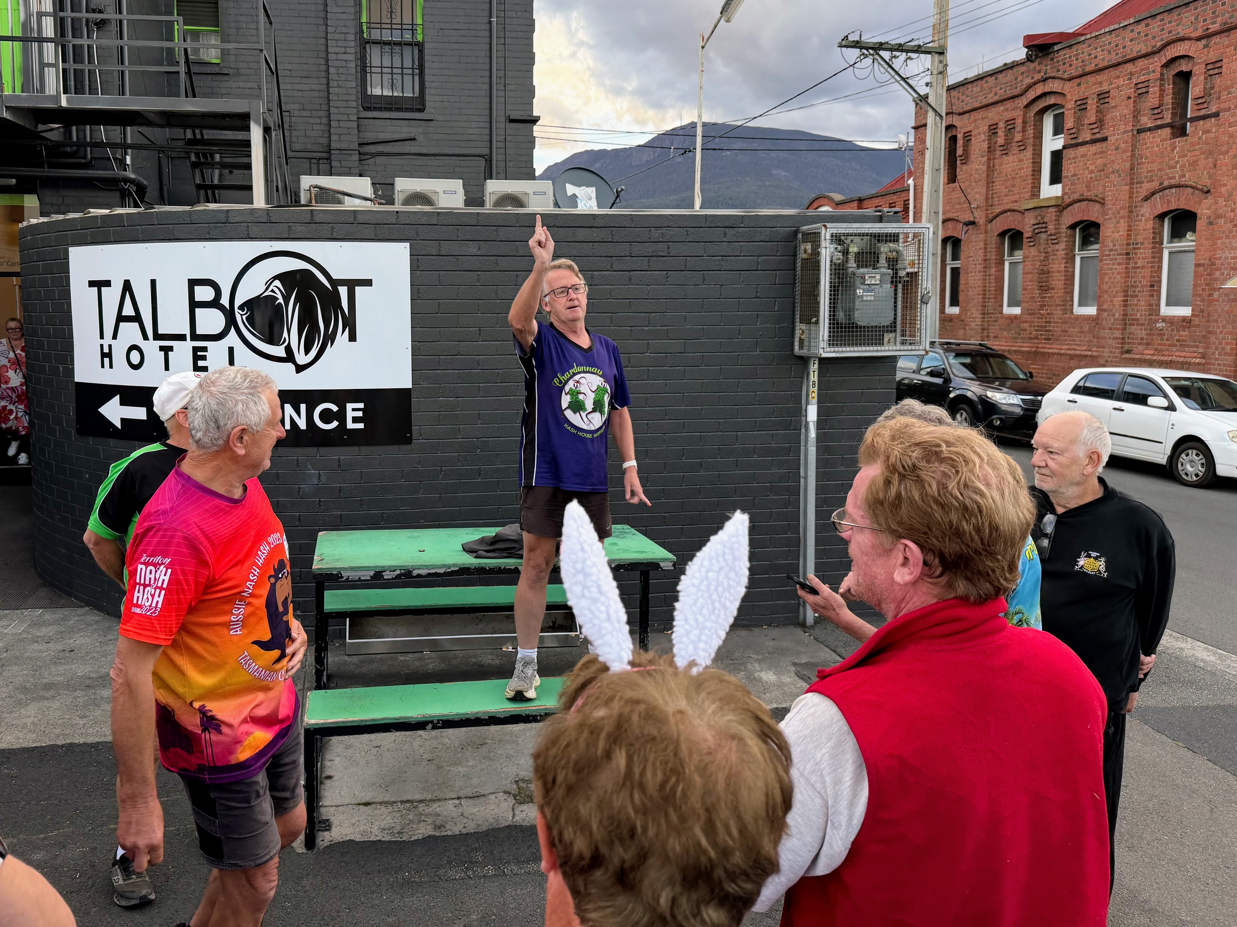 A smallish group of Hashers fronted up to a packed Talbot for the annual Easter run, where we were greeted to something that resembled a p*ssed version of locals bingo. Thank God Maximus insisted on being early because two seconds after walking in the door he was accosted by the Hash Cashiers for the weekly something to do with the square not working on someone’s phone. Thanks to Maxi’s superior IT skillz, all was saved and Snacky actually called the run early at 6.30 and 14 seconds, much to the dismay of the pack who insisted on waiting until 6.31pm before heading off.