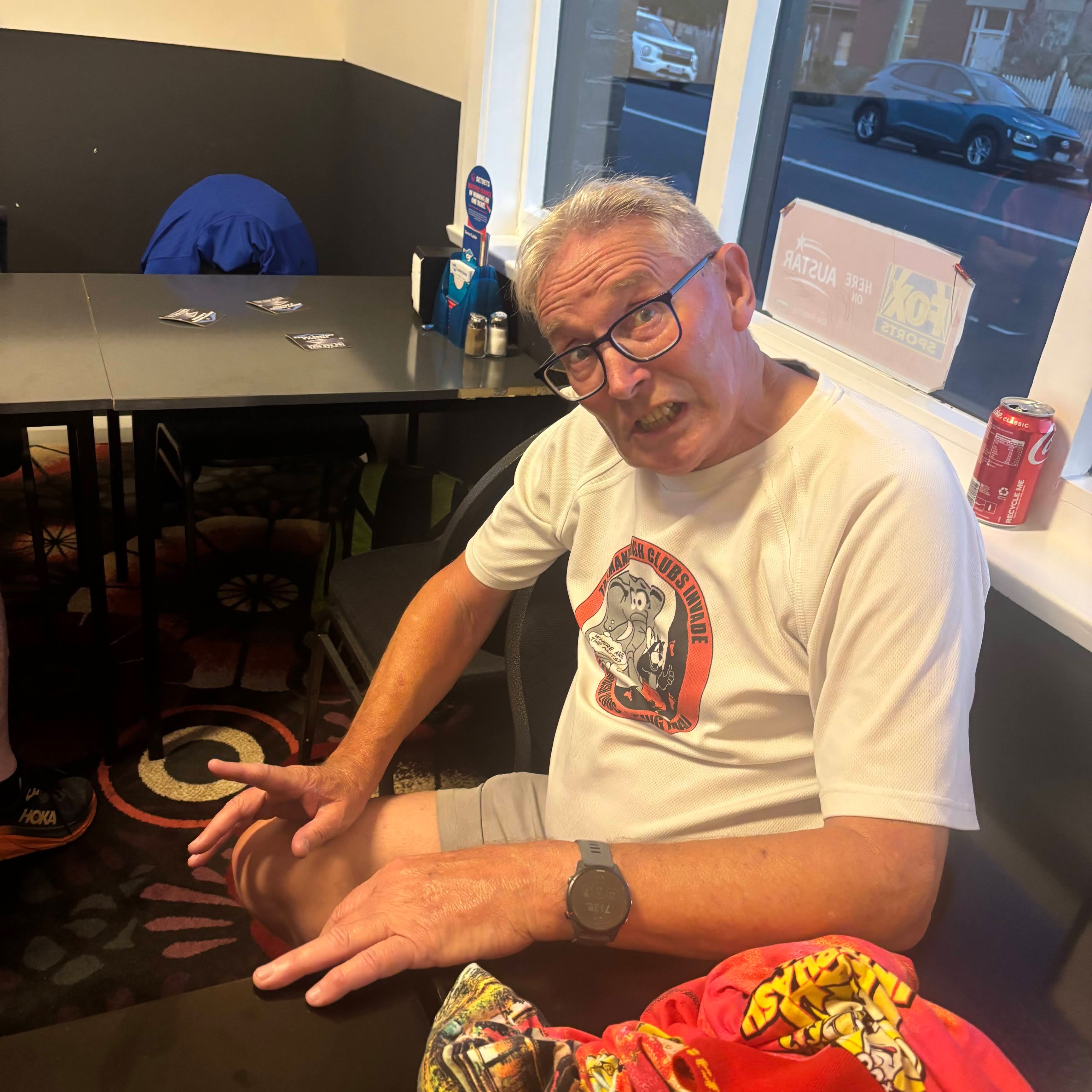 - Sonar: His Strava on retirees’ Hash was a bit out of whack – logged 78km for a 12m ride.
